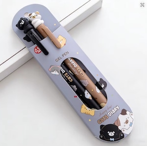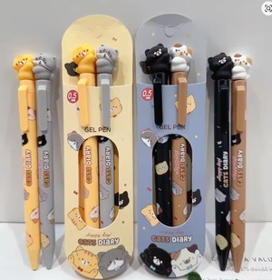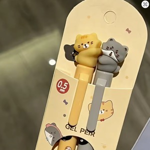 ペン上部に猫のフィギュアがちょこんと乗った、2本ペアのジェルペンセットです。