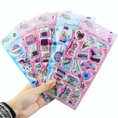 シャカシャカシール_グリッタースパンコールぷっくりステッカー ランダム5枚セット