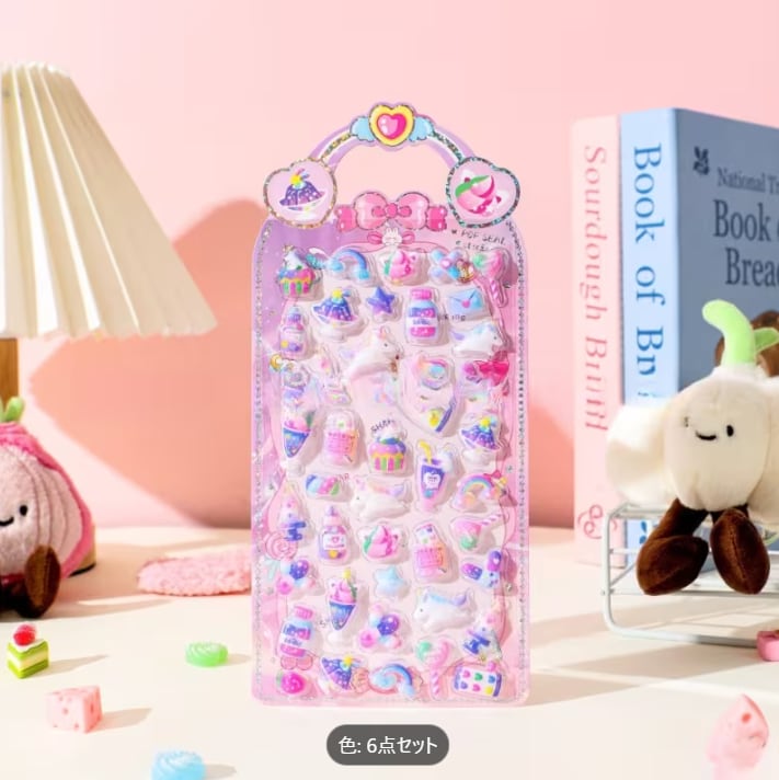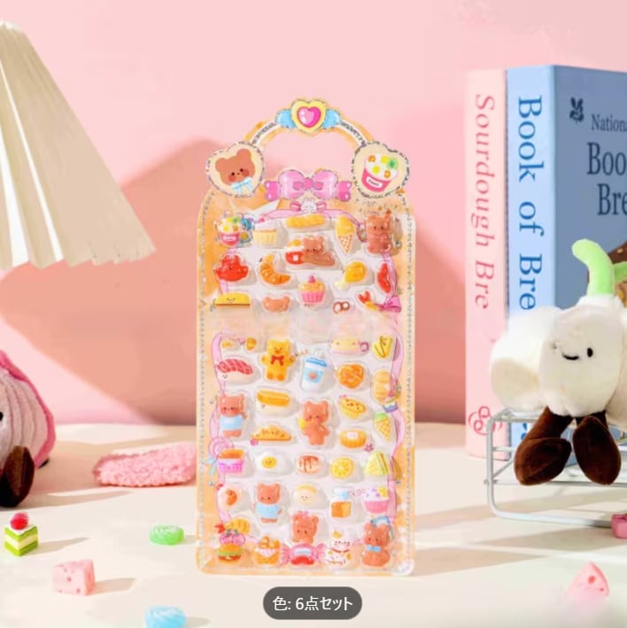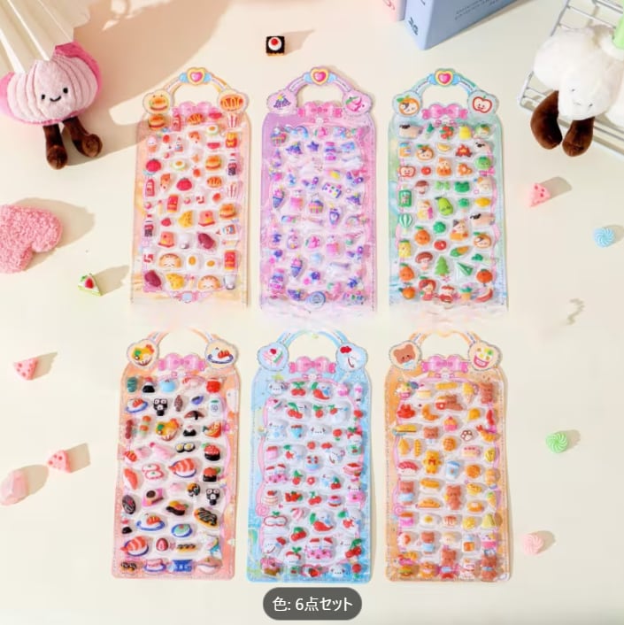 触れるたびにぷにぷにとした弾力が楽しい立体バブルステッカーの全6種類セットです。