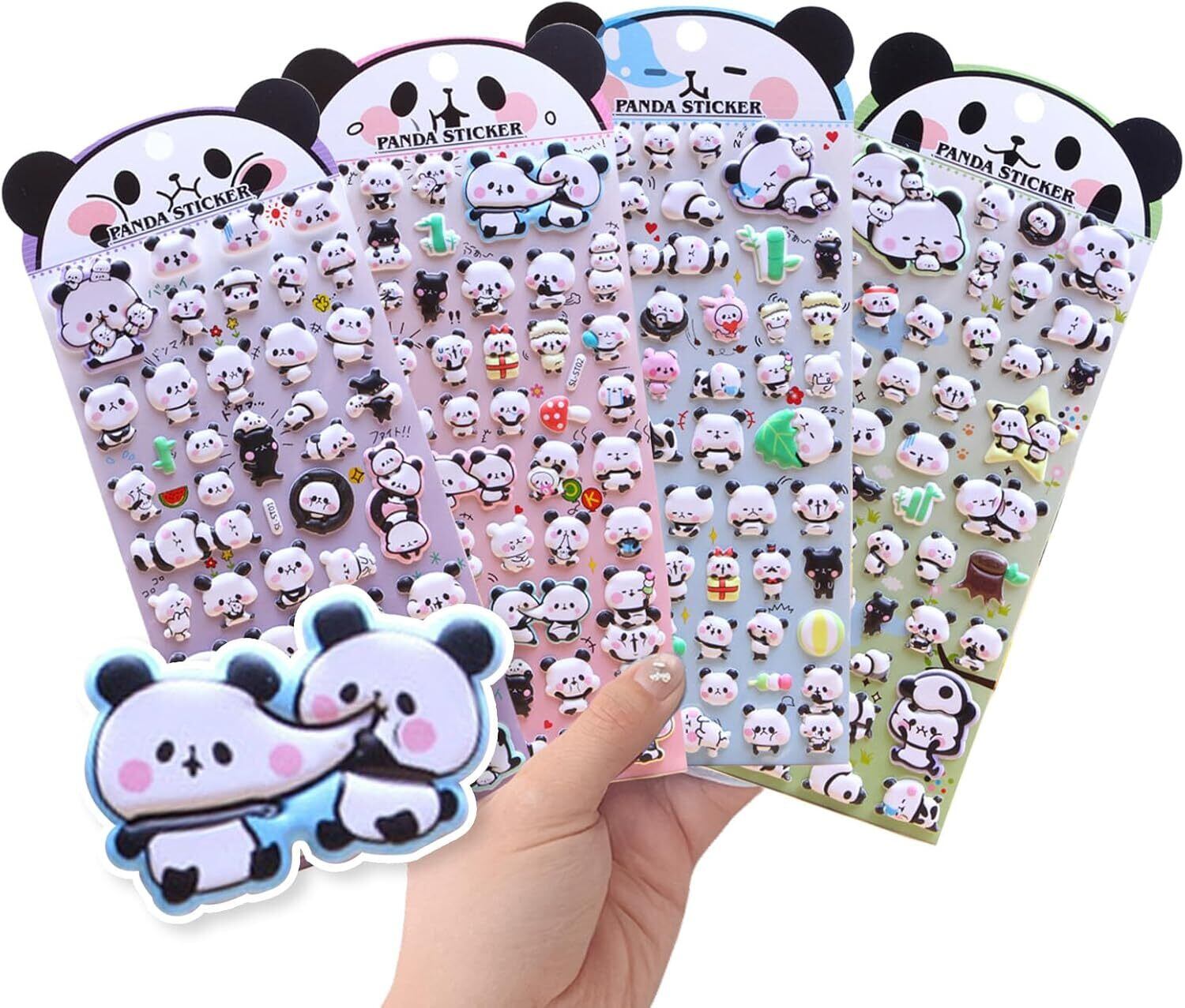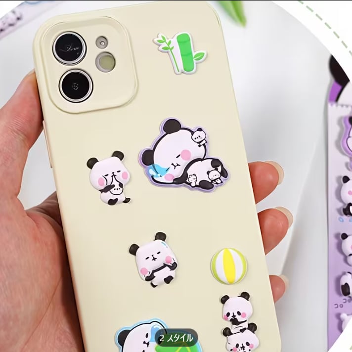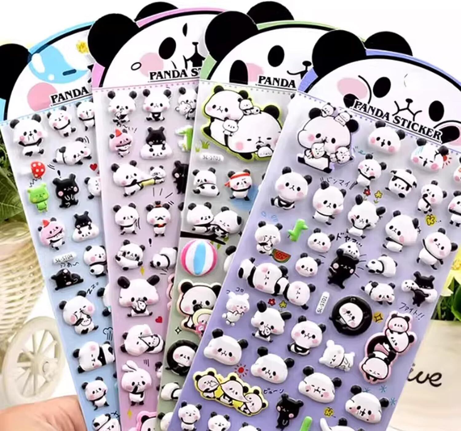 いろんな表情やポーズのパンダがぎっしり詰まった、ぷっくり立体ステッカーの全4種類セットです。