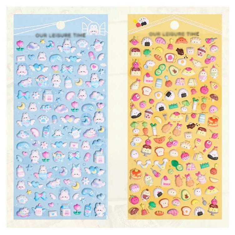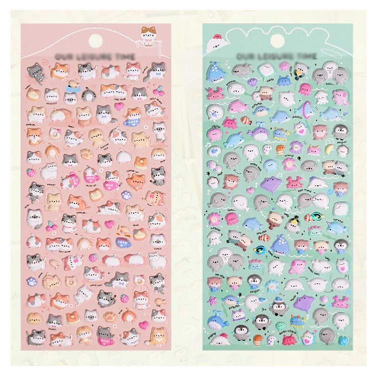 ミニキャラぷっくりステッカー 全6種類セット OUR LEISURE TIME 動物 寿司 フード 海の生き物 手帳デコ 大容量