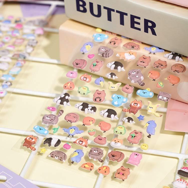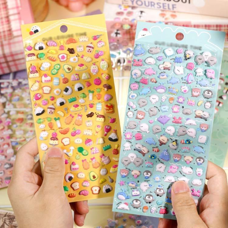 動物・お寿司・フード・海の生き物・猫・ペンギンなど多彩なモチーフのミニキャラクターがぎっしり詰まったぷっくりステッカーの全6種類セットです。