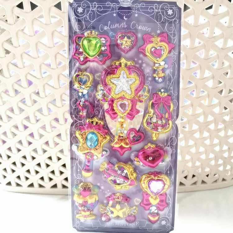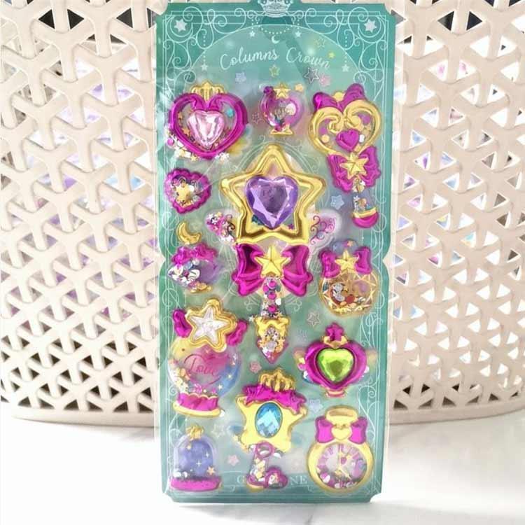 ハート、星、宝石などの魔法アイテムをモチーフにした豪華なデザインで、シール帳をデコレーションするのにぴったりです。立体感のあるジュエル素材でキラキラと輝きます。